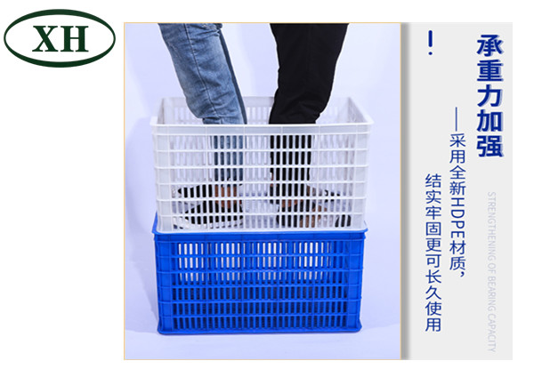 4、塑料周轉(zhuǎn)籮筐采用進(jìn)口HDPE全新料,質(zhì)地堅硬,耐寒性能良好,化學(xué)穩(wěn)定性很高,能耐酸堿及有機熔劑,無毒無味;有很突出的電氣性能和良好的抗輻射性,有較高的耐熱度。